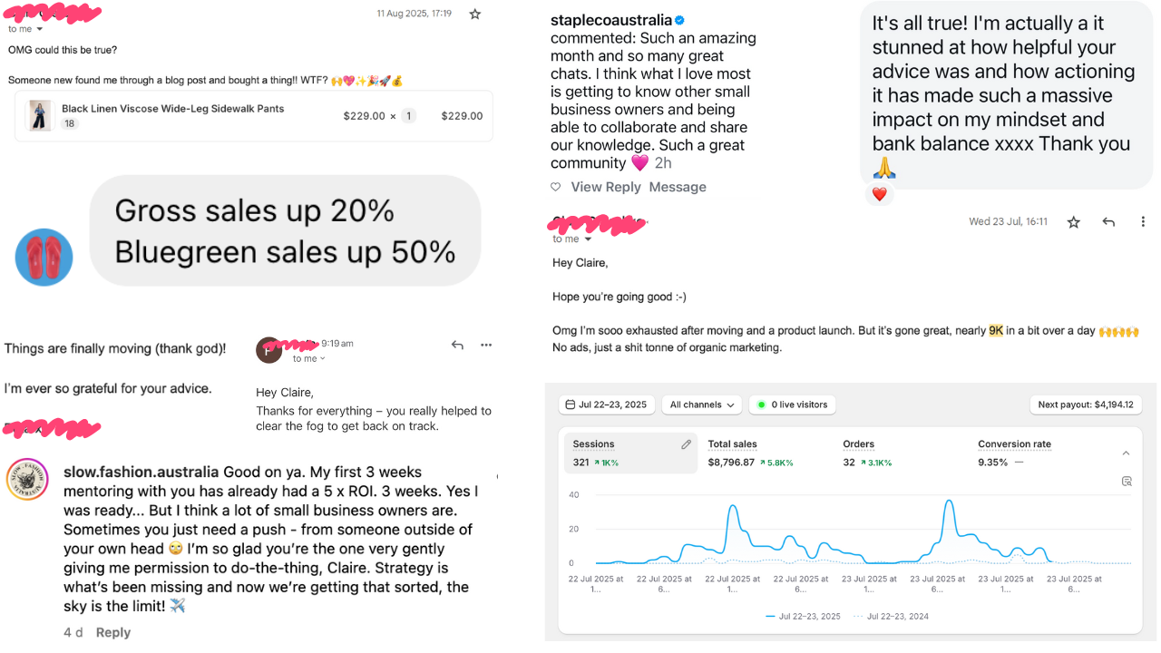 "Claire has been integral to my brand growth. I was sick of everyone telling me the only way to grow was Facebook ads but Claire showed me so many alternative and free growth strategies that actually worked."